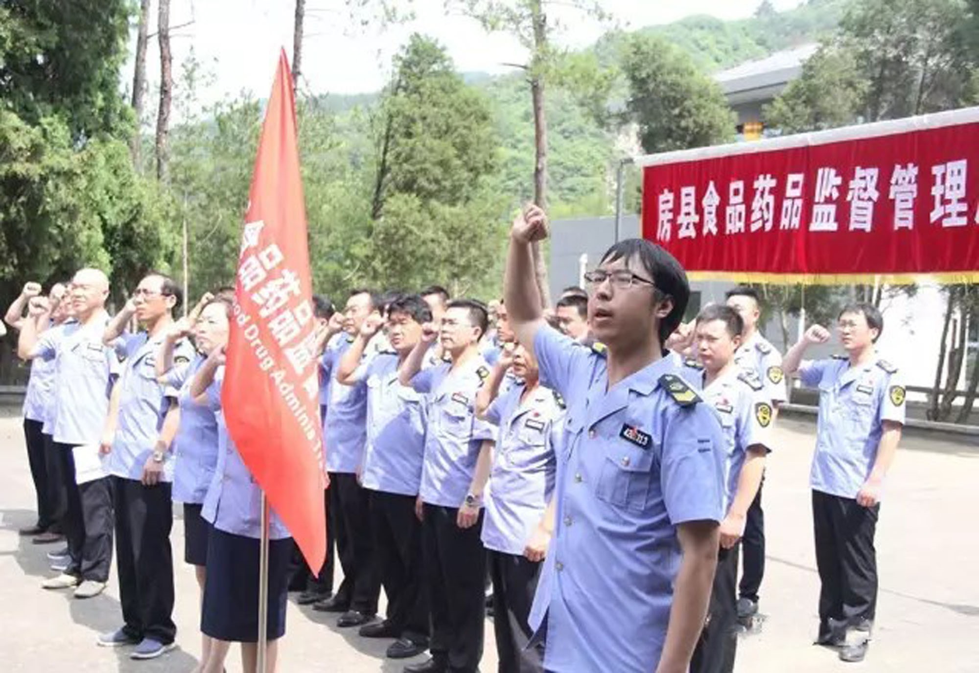 “我志愿加入中国共产党,拥护党的纲领,遵守党的章程……”为激发广大党员干部爱岗敬业、无私奉献的工作热情,25日上午,县食品药品监督管理局在“七一”建党节来临之际,组织系统全体党员来到烈士陵园,举行公祭革命先烈活动,面对党旗重温入党誓词,将使命与责任牢记心间,以实际行动迎接建党96周年。 (李绍龙 摄)
