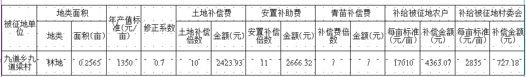 1、征地补偿标准:根据房县征地统一年产值标准,九道乡属Ⅳ类地区,年产值标准为1350元/亩。具体补偿标准和数额见上表。