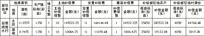 2、安置途径:本次对被征地农民的补偿采取货币安置,将土地补偿费的70%、安置补助费和青苗补偿费全额拨付给被征地农民(见下表)。房县自然资源和规划局将征地补偿费拨付给窑淮镇人民政府,由乡镇人民政府拨付给村委会,再由村委会分别对被征地农民进行兑付。
