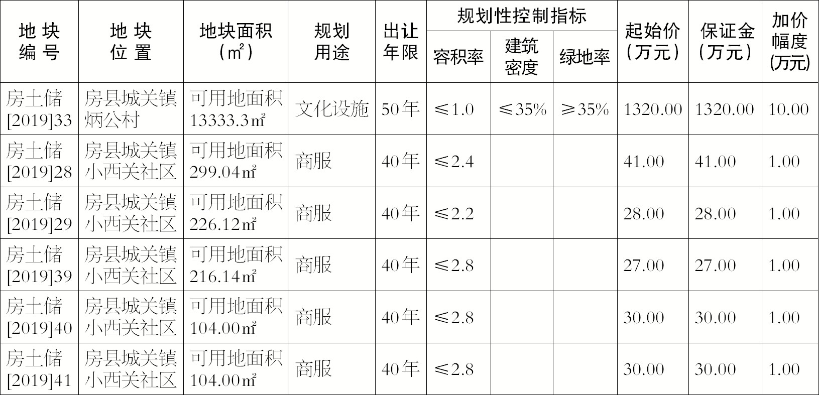 2、本次出让的宗地以现状条件出让,房土储〔2019〕33号宗地由房县城关镇人民政府负责交地,房土储〔2019〕28、29、39、40、41号宗地宗地由西关片区棚改项目指挥部负责交地。