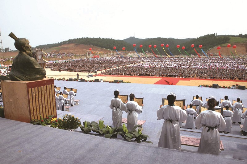 我县第一届诗经文化节开幕式上“万人诵诗经”。