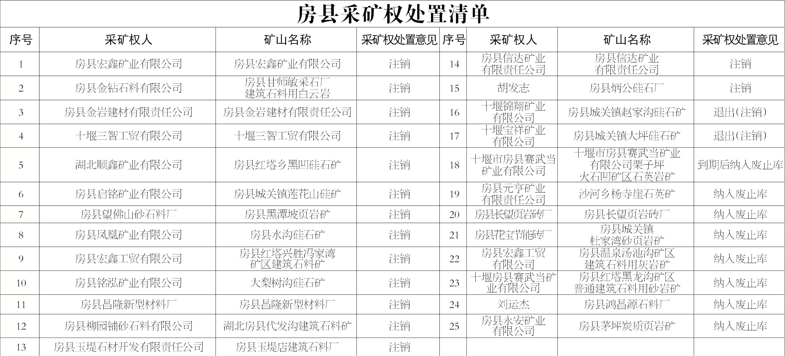 房县自然资源和规划局 关于处置部分过期采矿权的公告