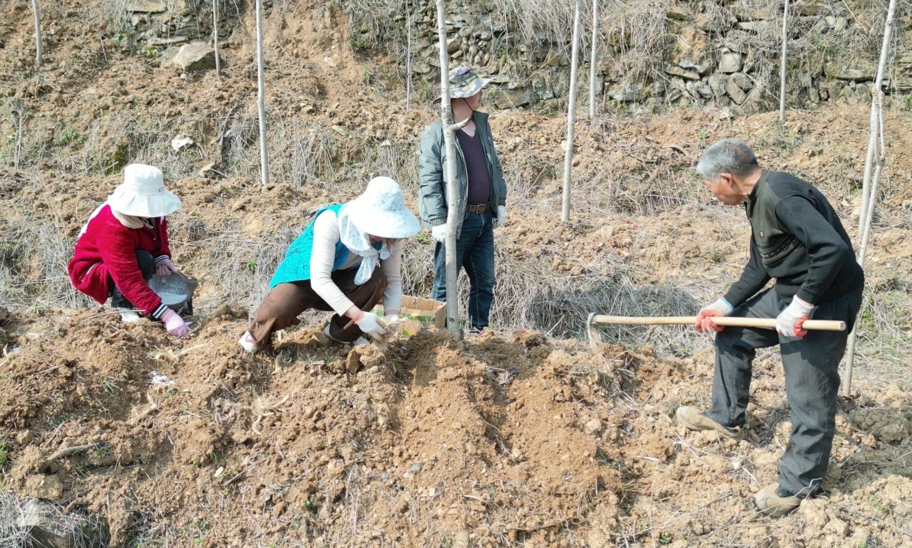 本报讯 (记者杨正强通讯员欧阳新宇 杨钧宜) 近日,在万峪河乡老人坪村黄精种植基地,村民们趁着晴好天气种植中药材黄精,一派人勤春忙的喜人景象。
