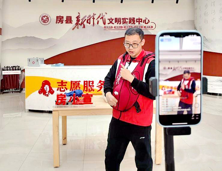 近日,县红十字会在县新时代文明实践中心开启首场应急救护知识普及直播活动。志愿者通过线上直播的形式,详细讲解心肺复苏术、AED使用以及气道异物梗阻处理等常见应急救护知识,营造“人人学急救,急救为人人”的社会氛围。(陈忠海 摄)