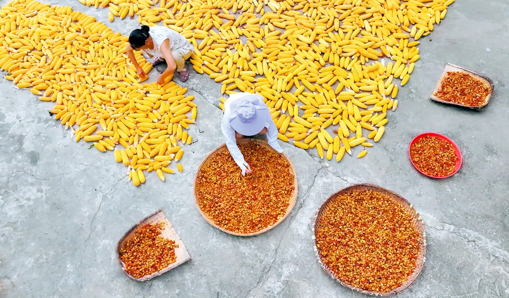 8月17日,在军店镇军马村,农民在院落晾晒玉米、红枣。时下,我县玉米、红枣进入丰收季,农民抢抓睛好天气,收获玉米,采收鲜枣,晾晒秋粮、秋果,畅享丰收的喜悦。(张启龙 余杉 摄)